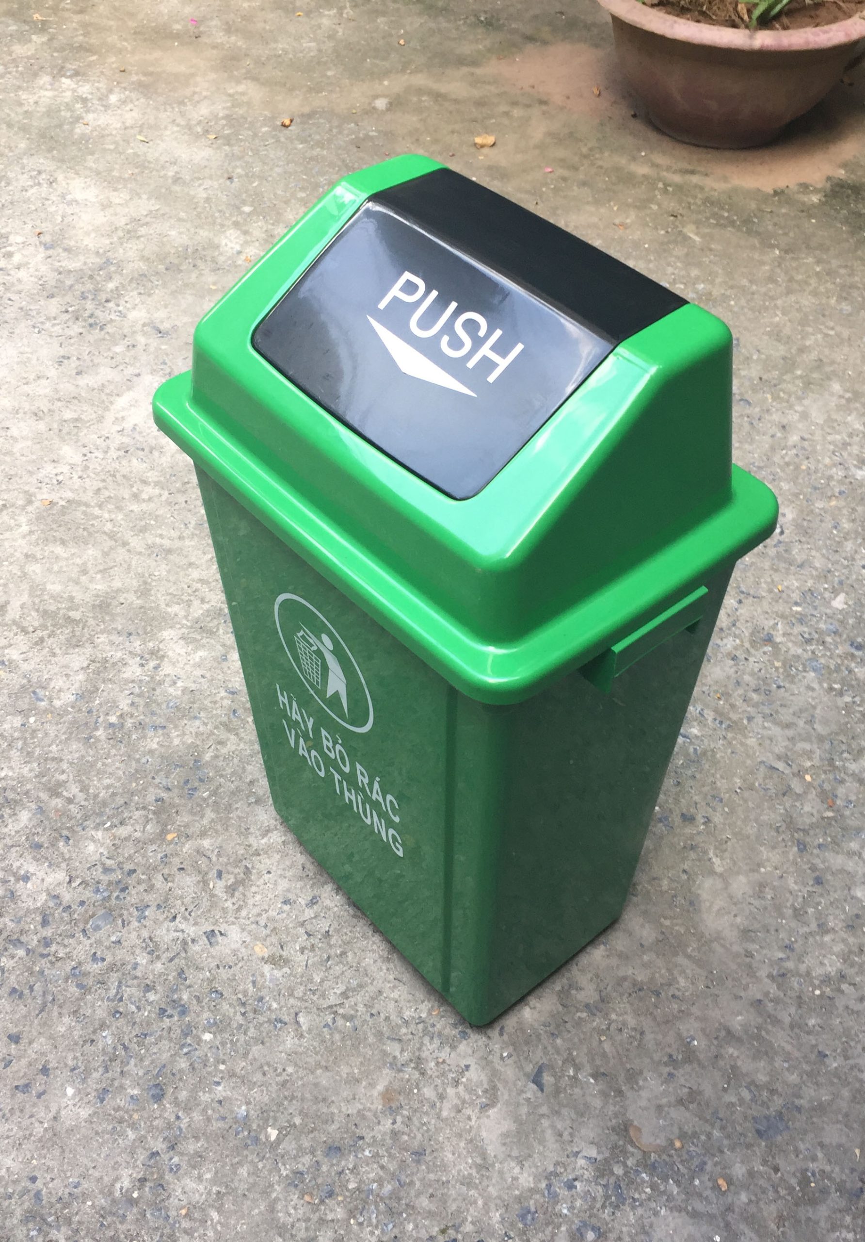 Thùng rác 60 lít nắp lật xanh được nhập khẩu trực tiếp bởi Công ty CP thiết bị môi trường và đô thị Hà Nội, đảm bảo hàng chính hãng, chất lượng cao, giá thành hợp lý.